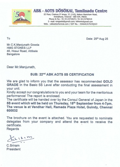 Started HMG Stones, Attibele, Bangalore. -